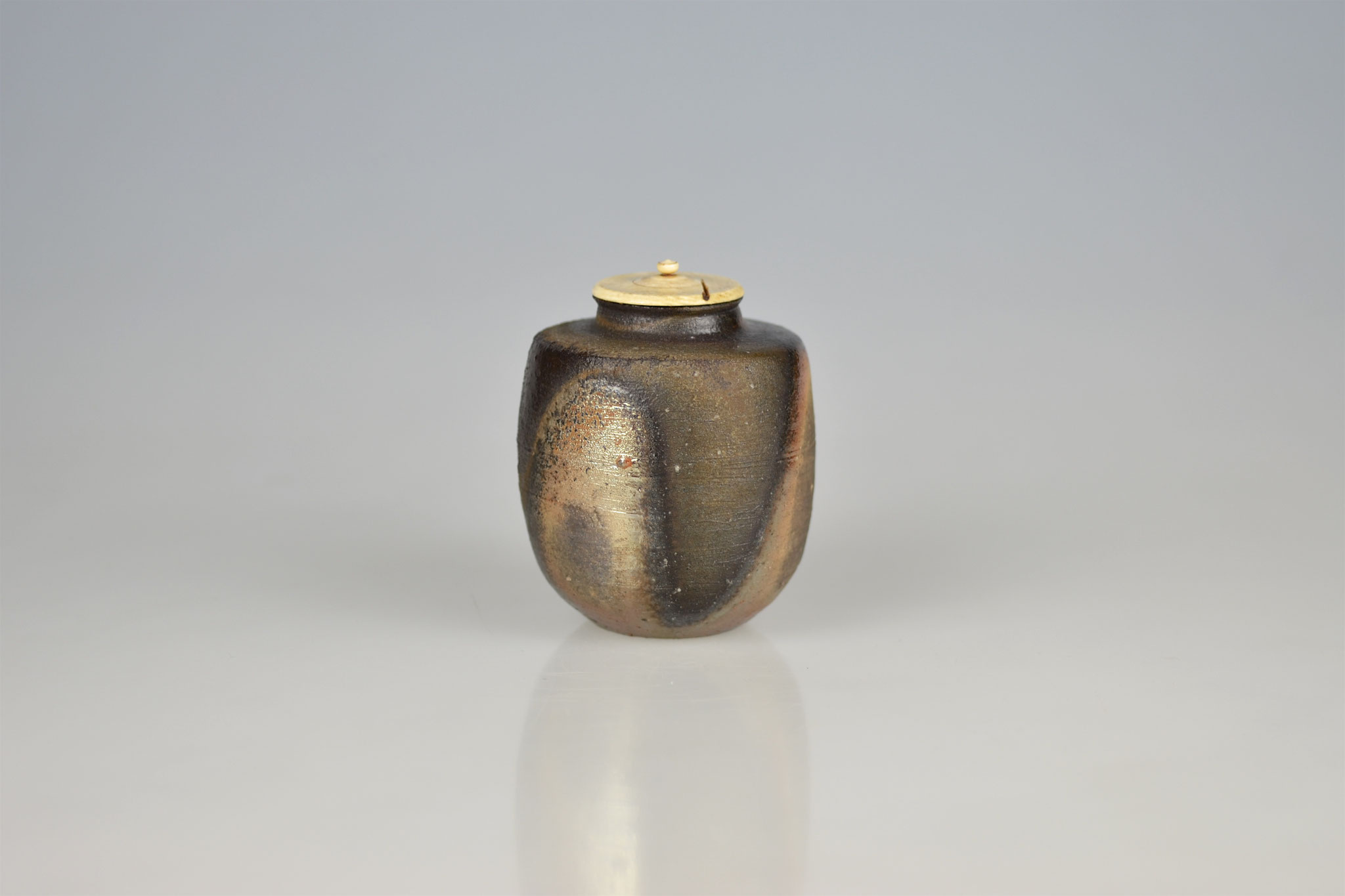 We are pleased to present a selection of outstanding ceramic works by Fujiwara Yū (1932–2001), one of the most important Japanese potters of the 20th century and a designated Living National Treasure for Bizen ware. As the son of Fujiwara Kei, he played a central role in the revival of Bizen ceramics after the Second World War. Rooted in the aesthetics of the Momoyama period, his work is known for its powerful presence, minimalist form, and nuanced firing effects. At the heart of this exhibition stands a rare and powerful Bizen fresh water jar, praised and certified by tea master Hisada Sōya XII of the Omotesenke tea tradition — a true master piece within Fujiwara’s oeuvre.